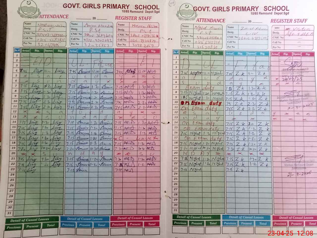 | CNIC | Full Name | Designation | R/C | Absence During Last Calender Month |
