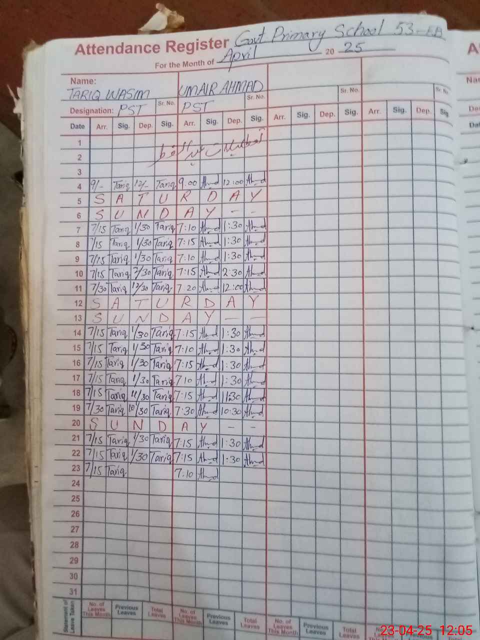| Name: TA**** WA**** Designation: (School Headmaster's/Headmistress's) PST Phone/Cell Number: 03**** |