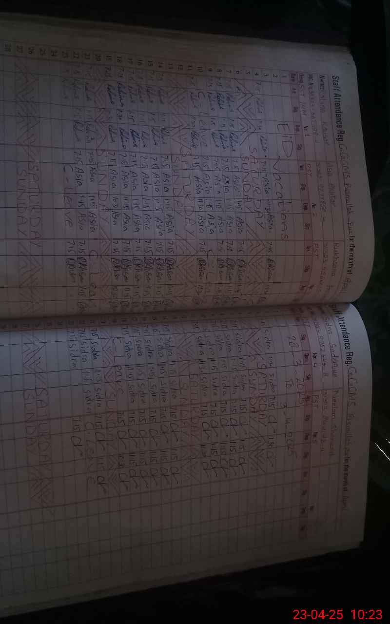 | CNIC | Full Name | Designation | R/C | Absence During Last Calender Month |