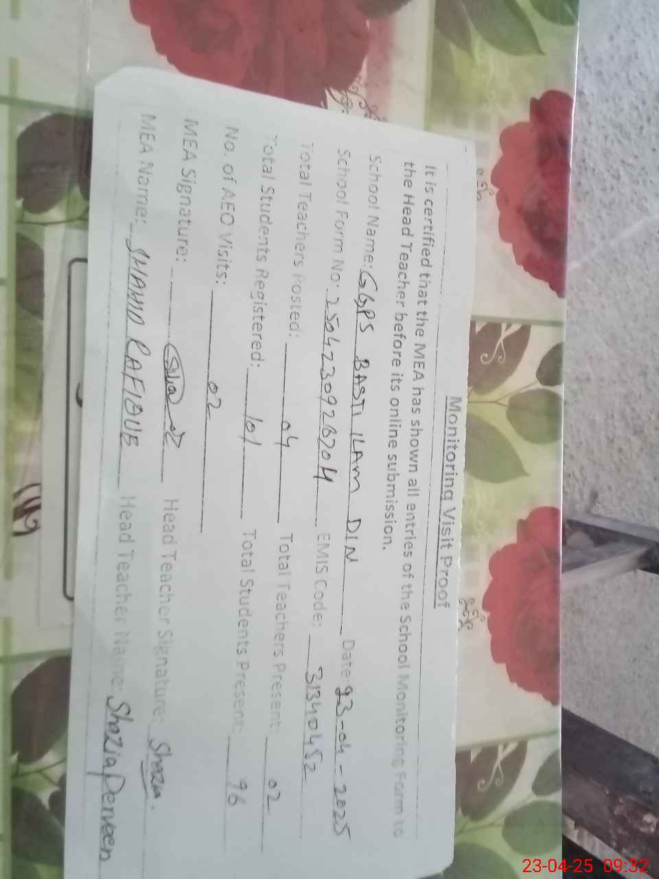 | EMIS Code: 31340452 | Name of School: GGPS BASTI ILAM DIN | |||