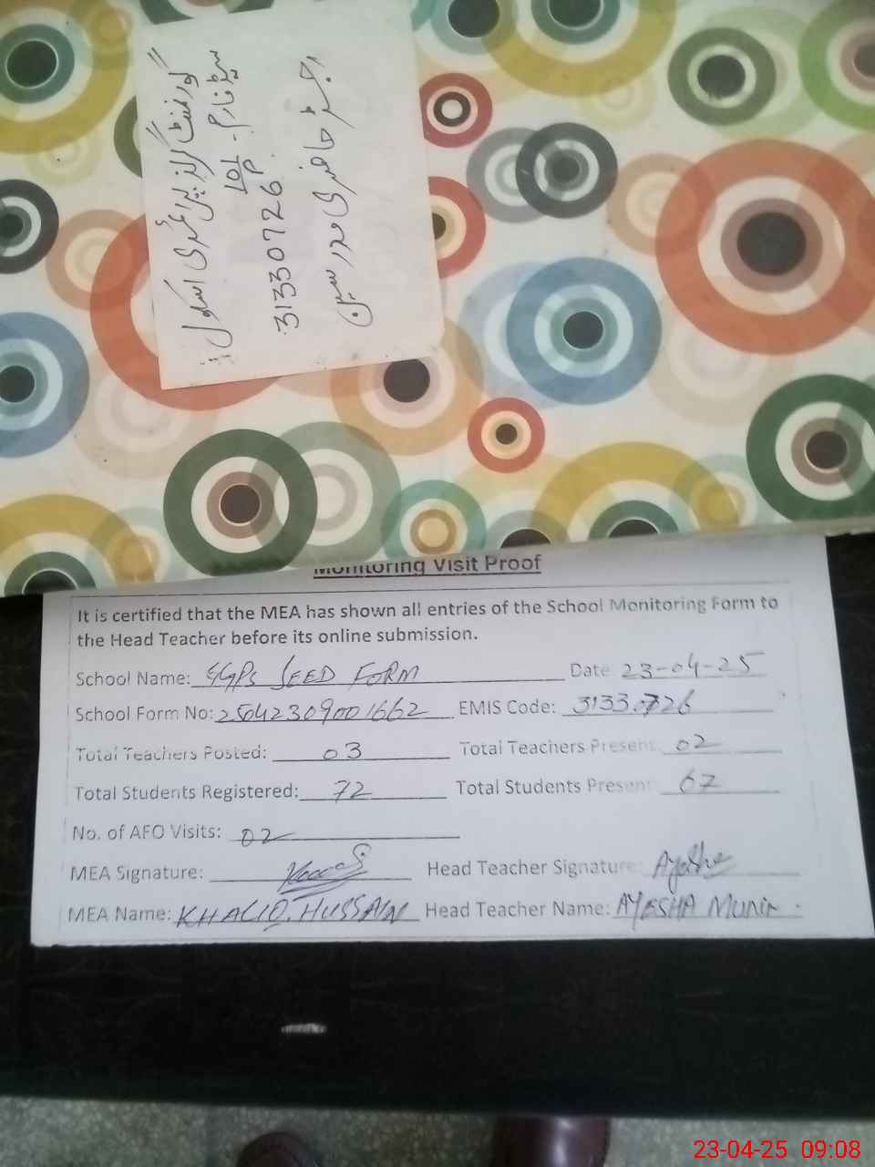| EMIS Code: 31330726 | Name of School: GGPS SEED FARM | |||