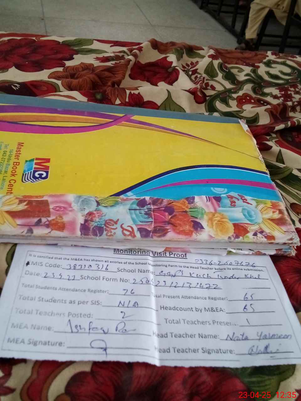 | Attendance Register | Head Teacher | MEA with School | Visit Proof |