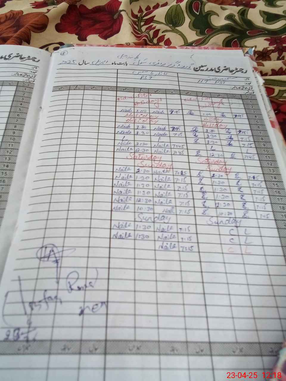 | Remarks (Use Separate Page if Required): Pst Shamim Akhtar is on Casual leave but no record of online leave is shown to MEA No visit of AEO after 13 Jan 25 | |||||