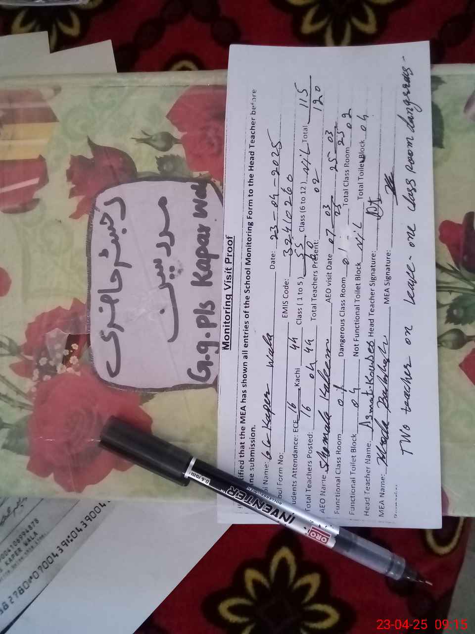 | EMIS Code: 32410260 | Name of School: GGPS KAPER WALA | |||