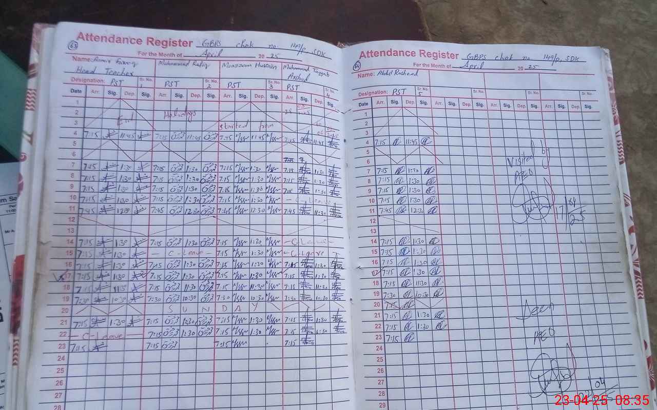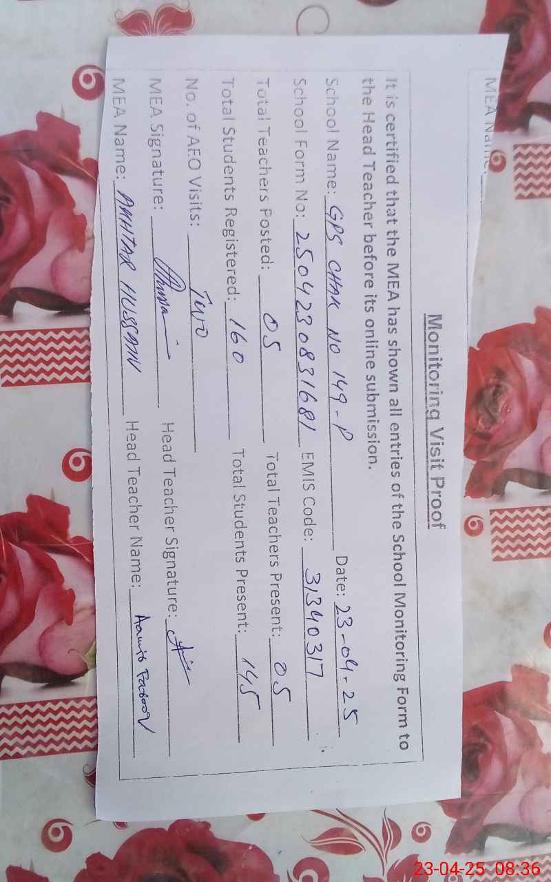 | Attendance Register | Head Teacher | MEA with School | Visit Proof |