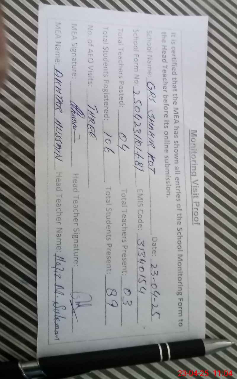 | EMIS Code: 31340154 | Name of School: GPS SHAKIR KOT | |||
