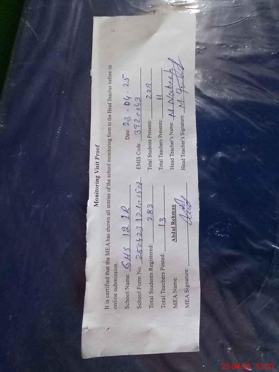 | EMIS Code: 39320043 | Name of School: GHS CHAK NO.12/1-R | |||