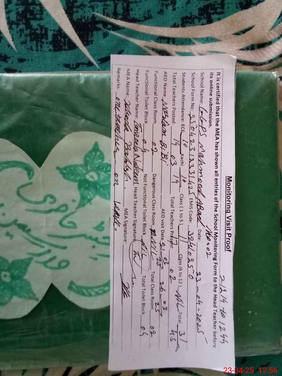 | EMIS Code: 32410256 | Name of School: GGPS MEHMOOD ABAD NO. 2 | |||