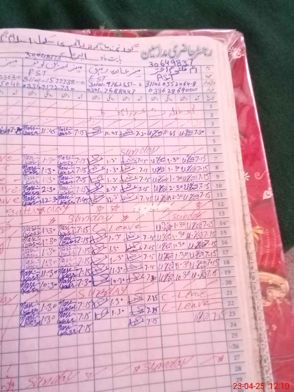 | CNIC | Full Name | Designation | R/C | Absence During Last Calender Month |