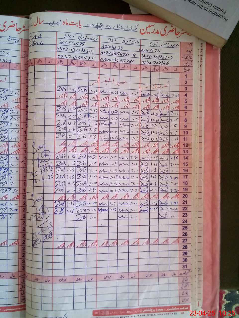 | CNIC | Full Name | Designation | R/C | Absence During Last Calender Month |