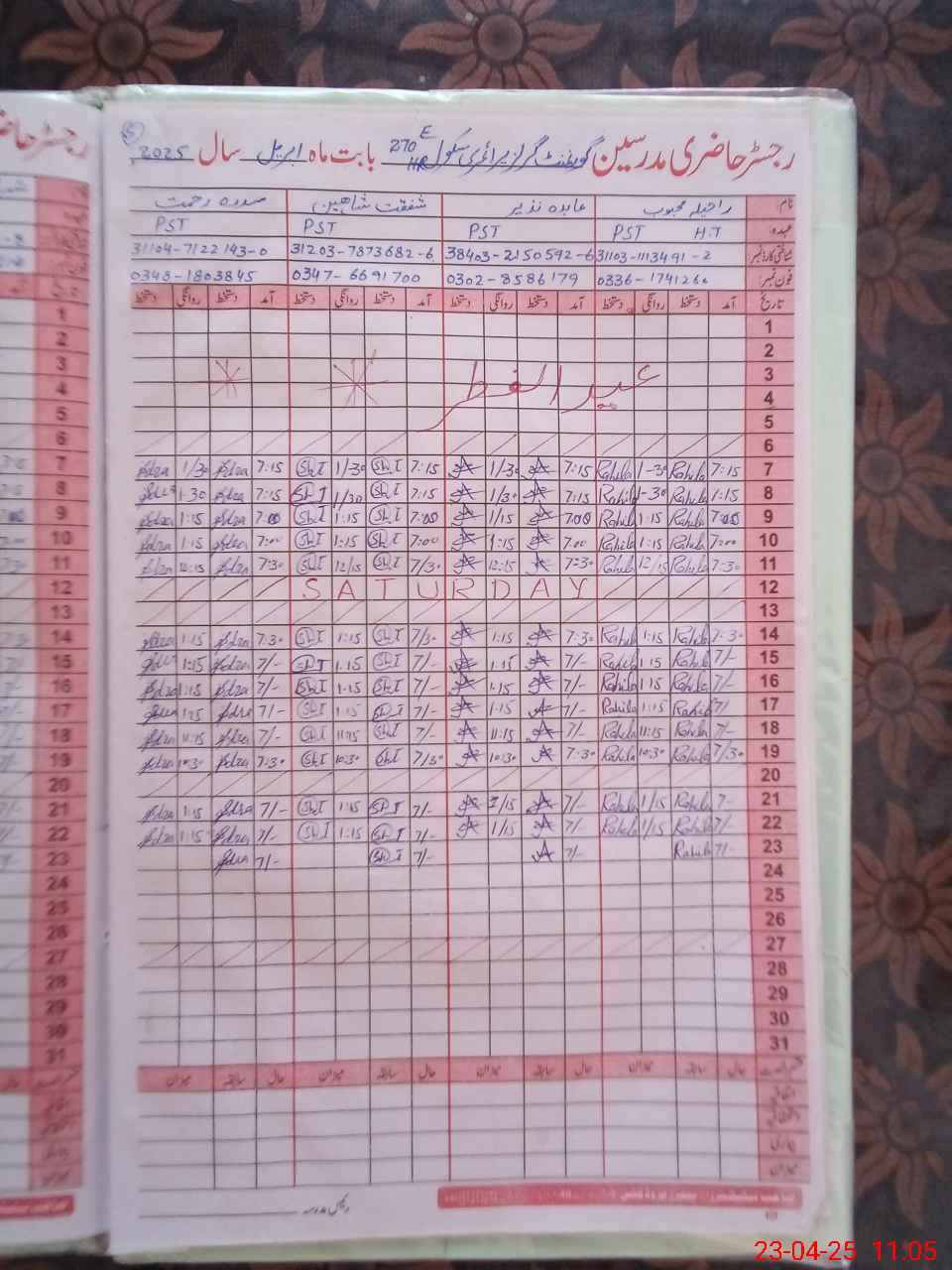 | Name: AB**** Na**** Designation: (School Headmaster's/Headmistress's) PST Phone/Cell Number: 03**** |