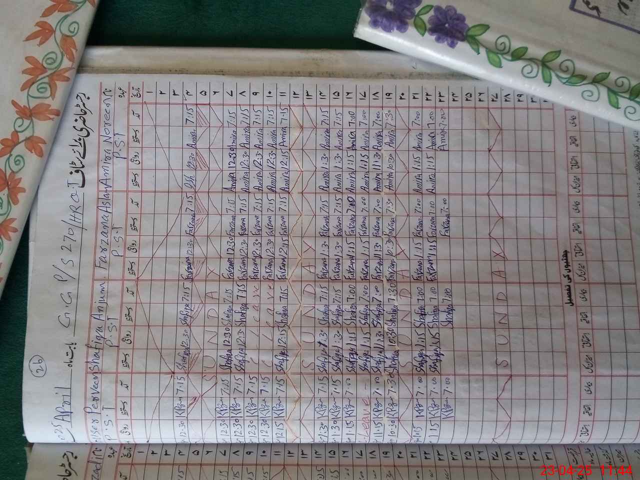 | Leave | Duty | Absent | Maternity | Medical | Ex- Pak |