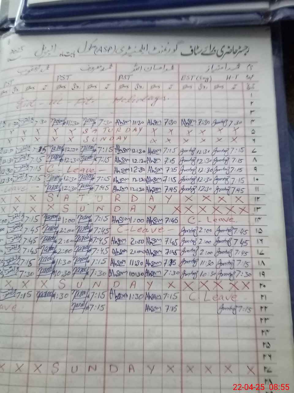 | CNIC | Full Name | Designation | R/C | Absence During Last Calender Month |