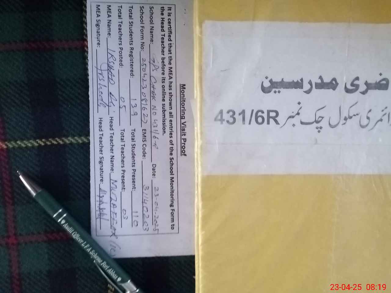 | EMIS Code: 31140203 | Name of School: GPS CHAK NO 431/6-R | |||