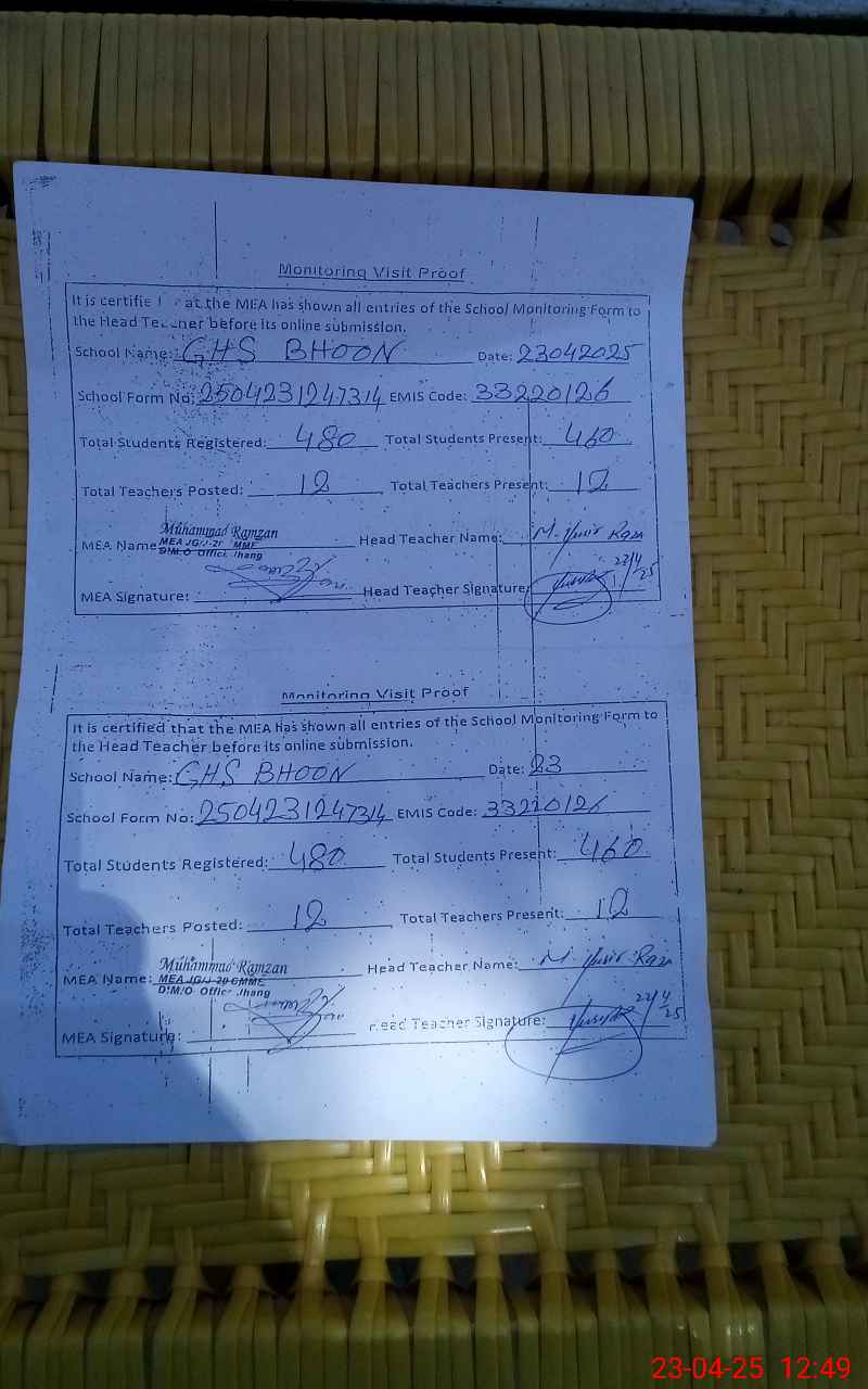 | EMIS Code: 33220126 | Name of School: GHS BHOON | |||