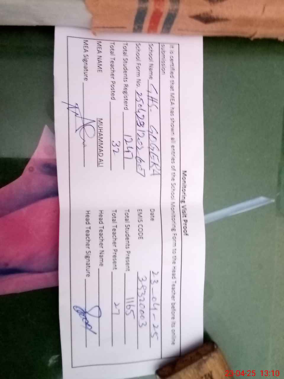 | EMIS Code: 39320003 | Name of School: GHS SADAR GOGERA | |||