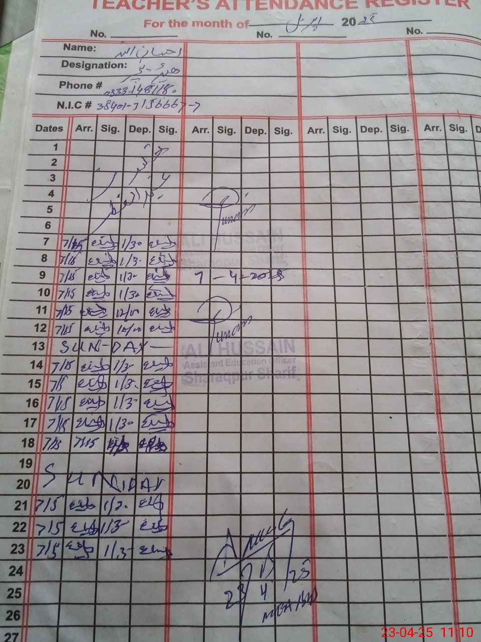 | Name: IH**** UL**** Designation: (School Headmaster's/Headmistress's) PTC/JV Phone/Cell Number: 03**** |