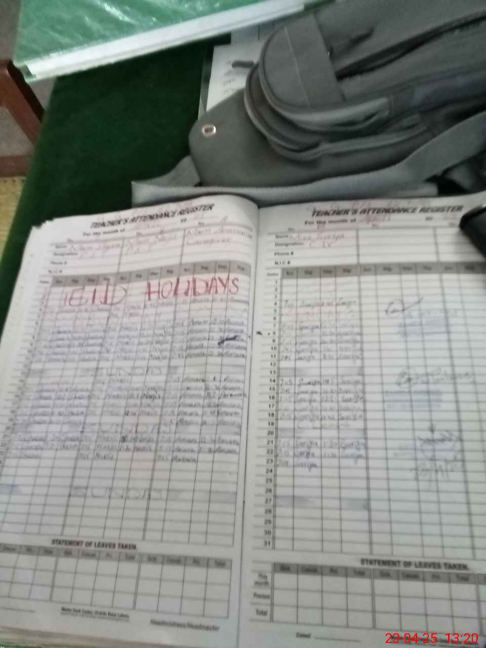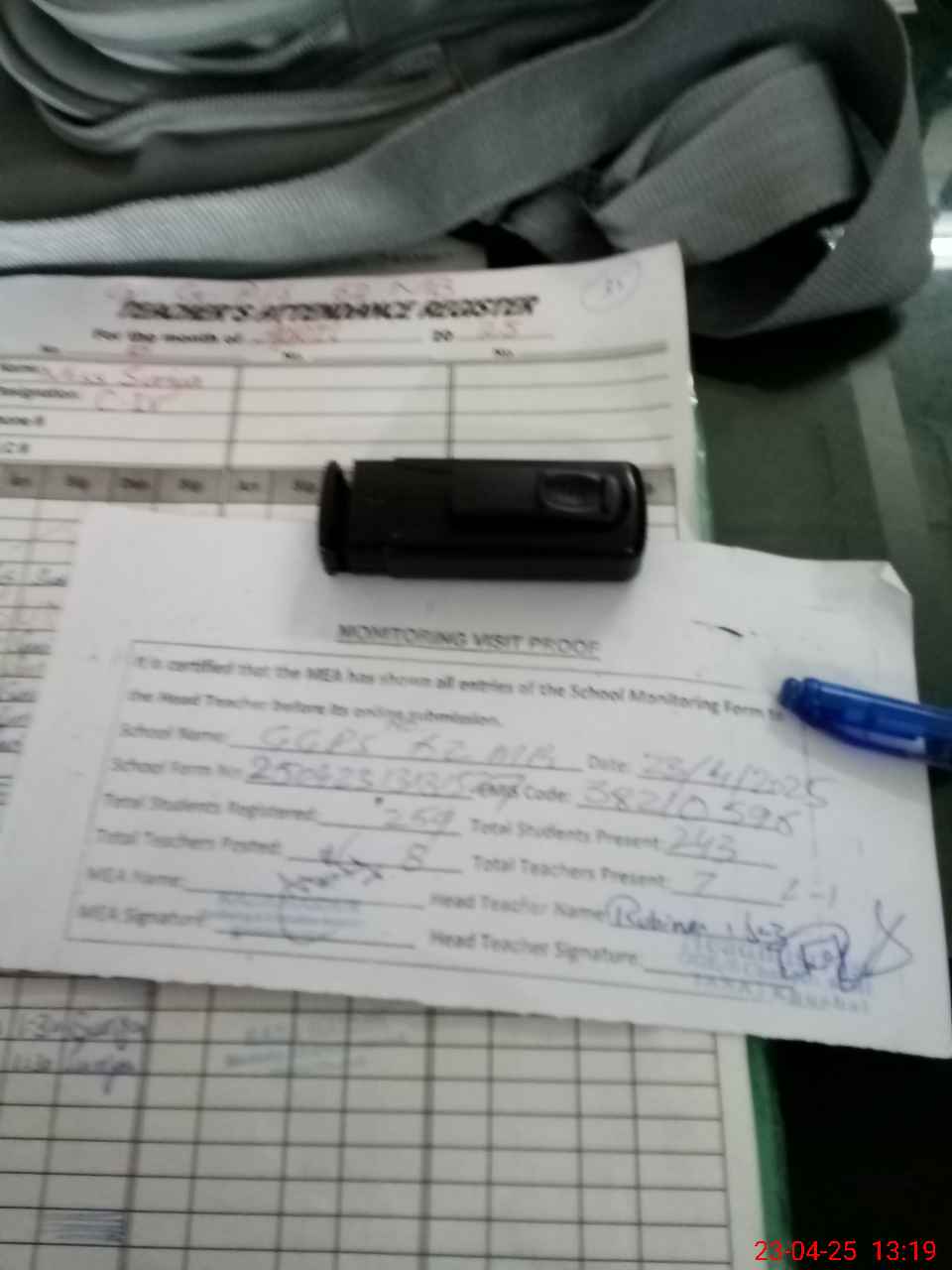 | Attendance Register | Head Teacher | MEA with School | Visit Proof |