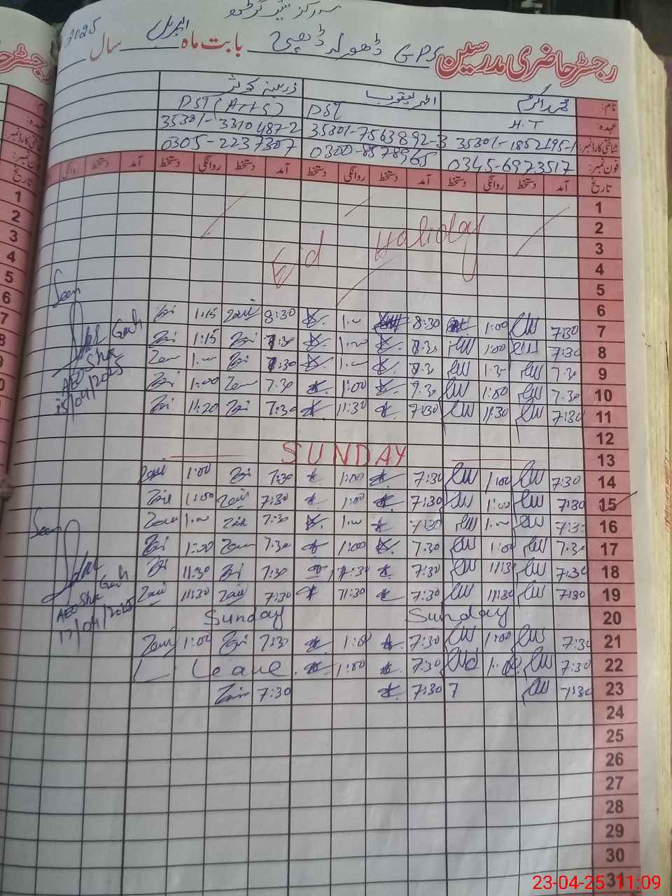 | Name: M.**** Designation: (School Headmaster's/Headmistress's) PST Phone/Cell Number: 03**** |