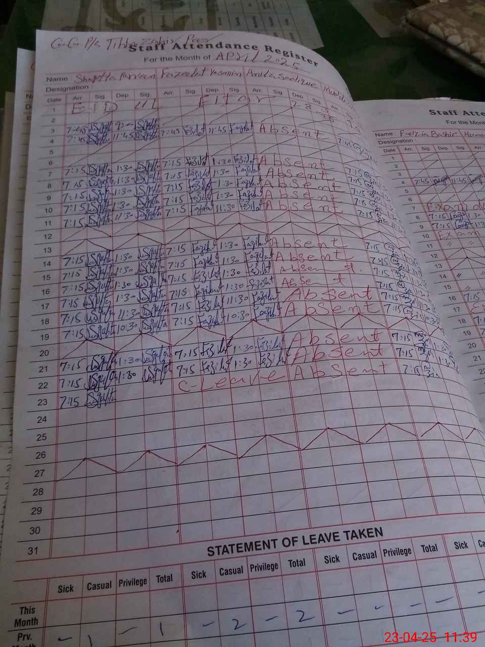 | 31**** | An**** Sa**** | 1 | 0 | 0 | 31 | 0 | 0 | 0 | 0 | 0 | 0 | Absent (Un-Authorized) | |