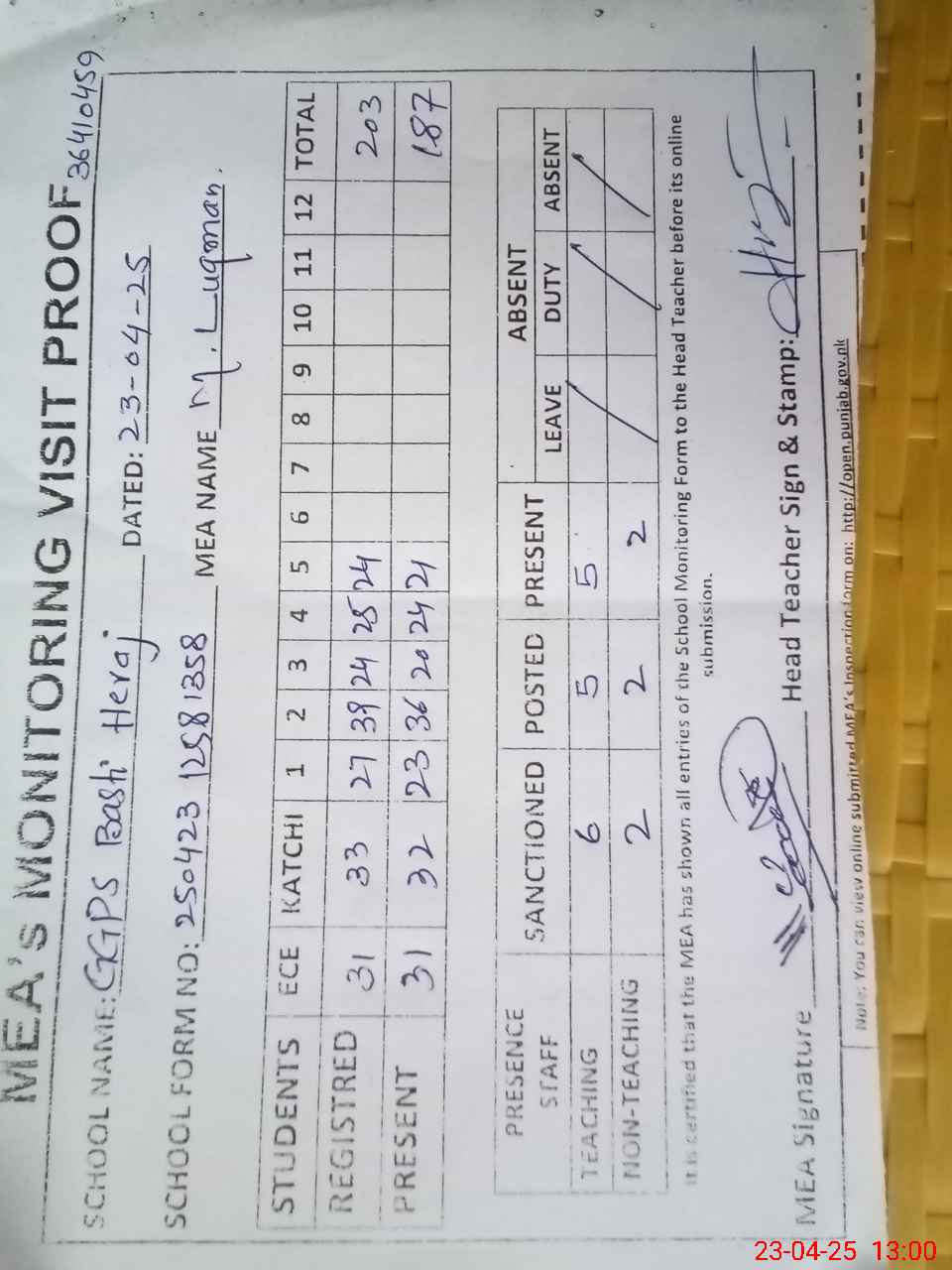 | EMIS Code: 36410459 | Name of School: GGPS BASTI HERAJ, ABDUL HAKIM | |||