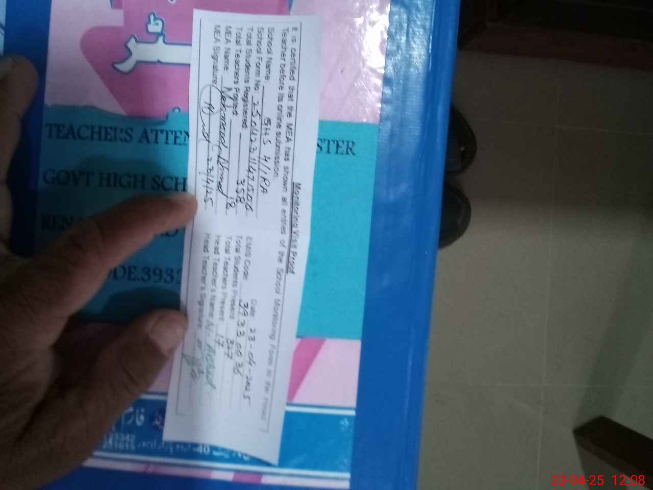 | Attendance Register | Head Teacher | MEA with School | Visit Proof |