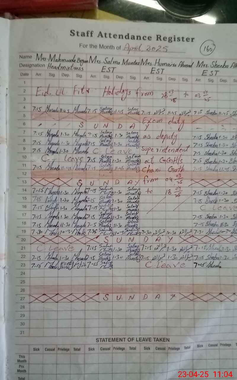 | 31**** | Me**** Be**** | SST | Regular | 0 | 0 | 0 | 0 | 0 | 0 | 0 | 0 | 0 | Exam Duty |
