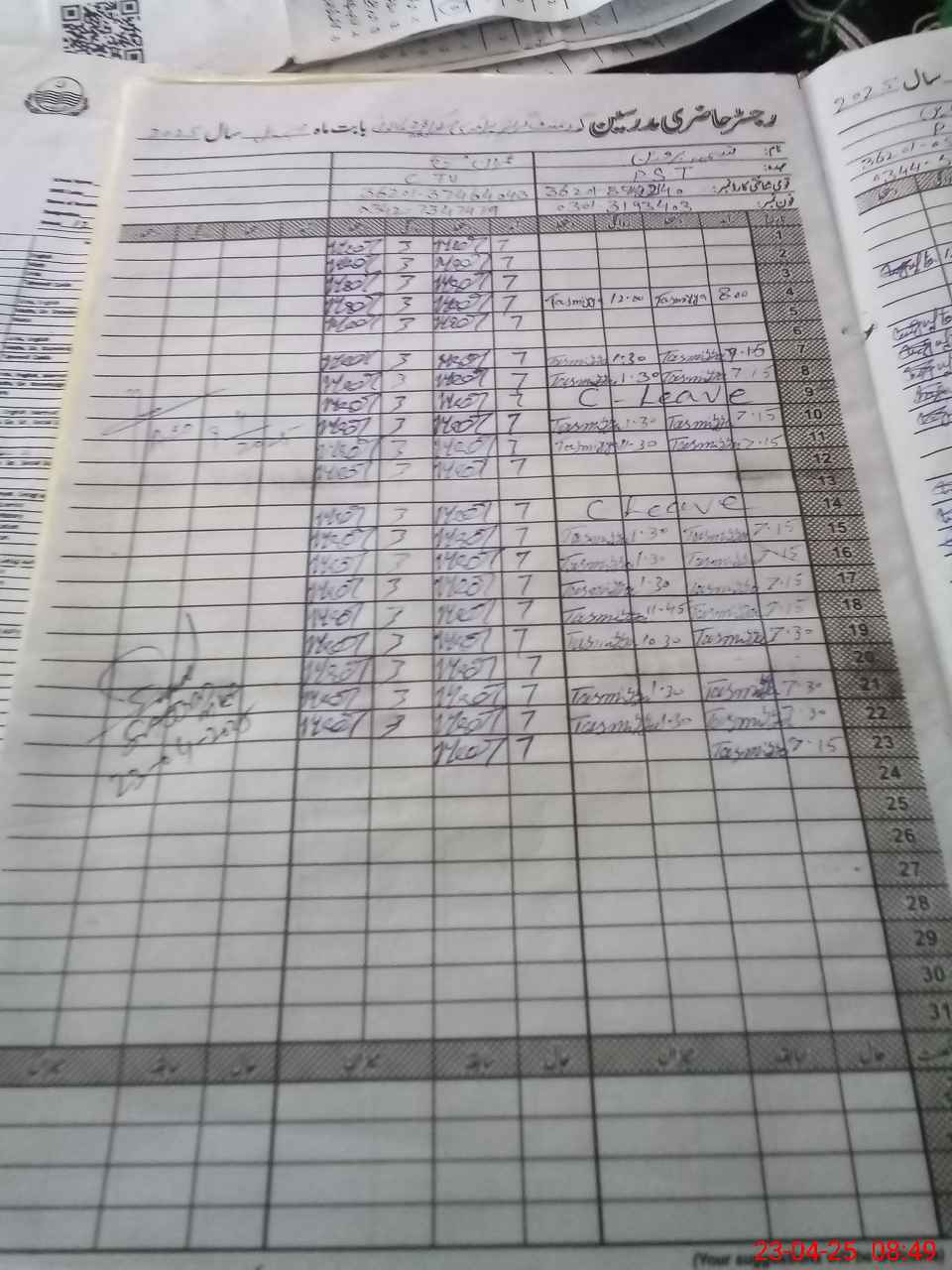 | CNIC | Full Name | Designation | R/C | Absence During Last Calender Month |