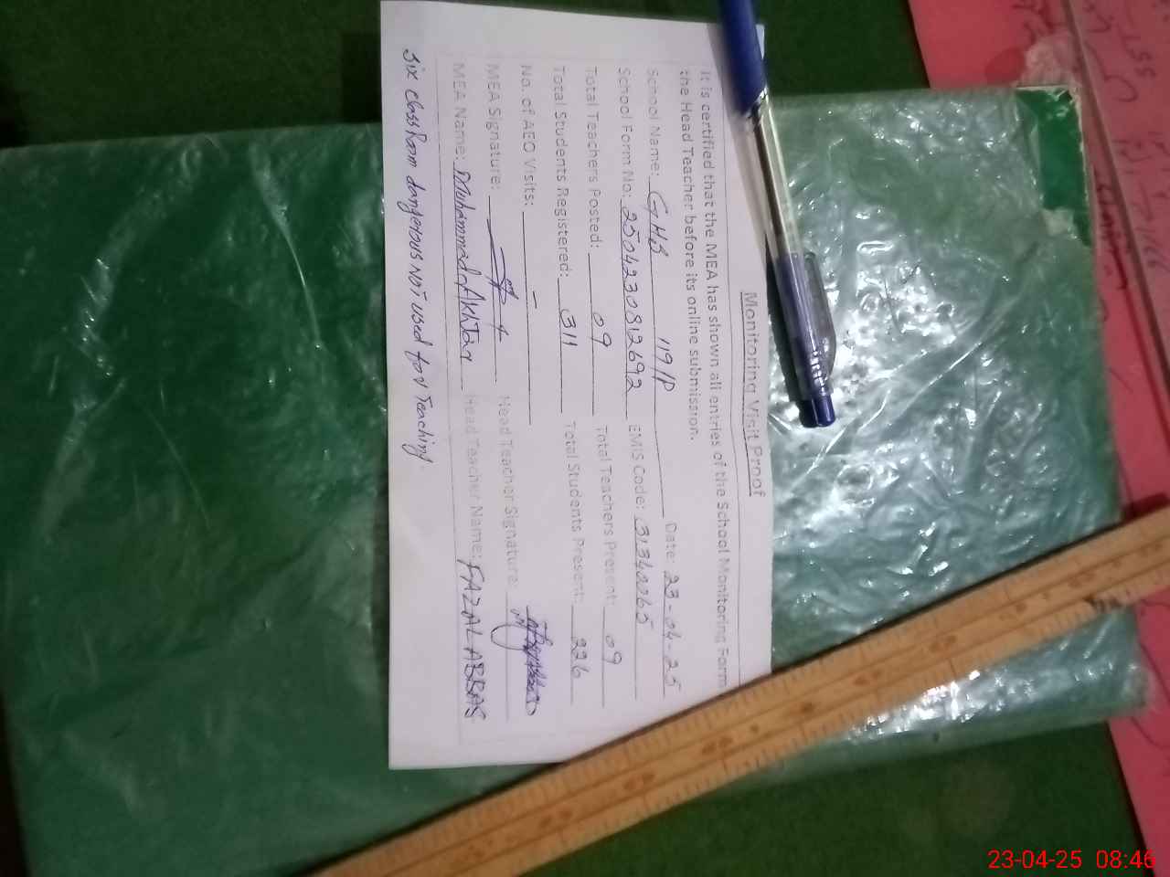 | Attendance Register | Head Teacher | MEA with School | Visit Proof |