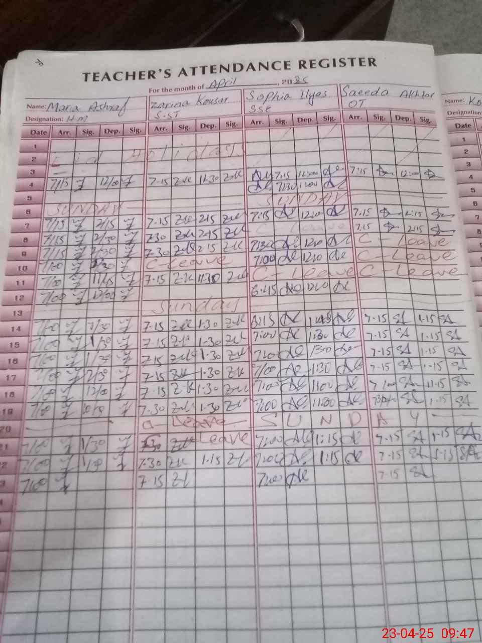 | Name: Ma**** As**** Designation: (School Headmaster's/Headmistress's) Headmistress Phone/Cell Number: 03**** |