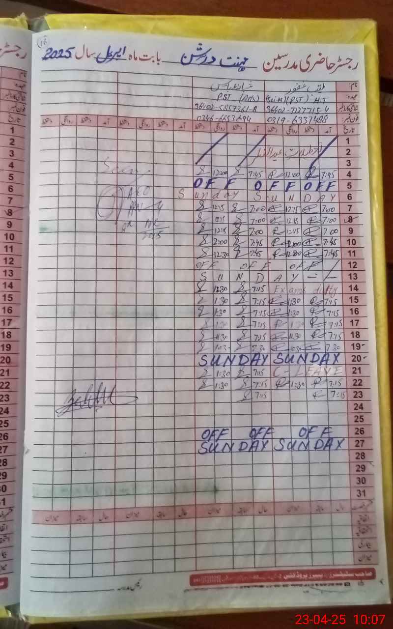 | Name: Ta**** Gh**** Designation: (School Headmaster's/Headmistress's) PST Phone/Cell Number: 03**** |