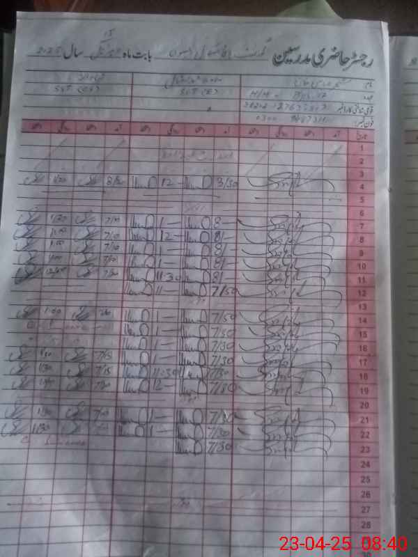 | CNIC | Full Name | Designation | R/C | Absence During Last Calender Month |