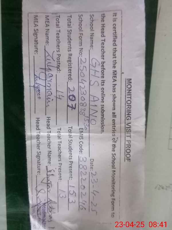 | EMIS Code: 38220246 | Name of School: GHS AINO | |||