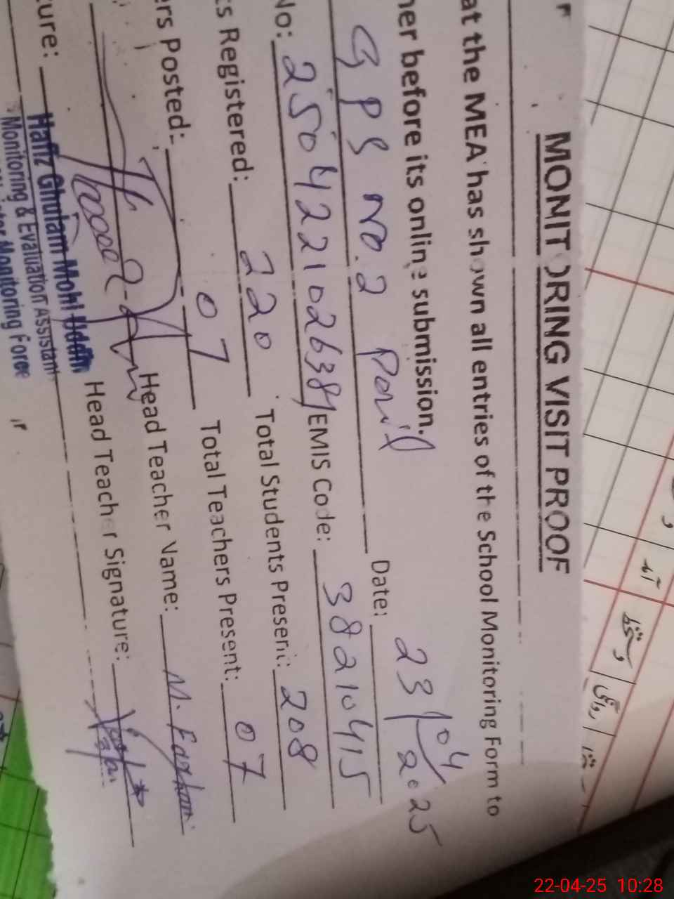 | Name: Mu**** Fa**** Designation: (School Headmaster's/Headmistress's) PST Phone/Cell Number: 03**** |