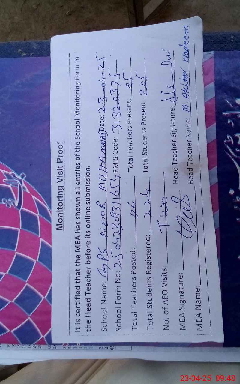 | EMIS Code: 31320375 | Name of School: GPS NOOR MUHAMMAD | |||