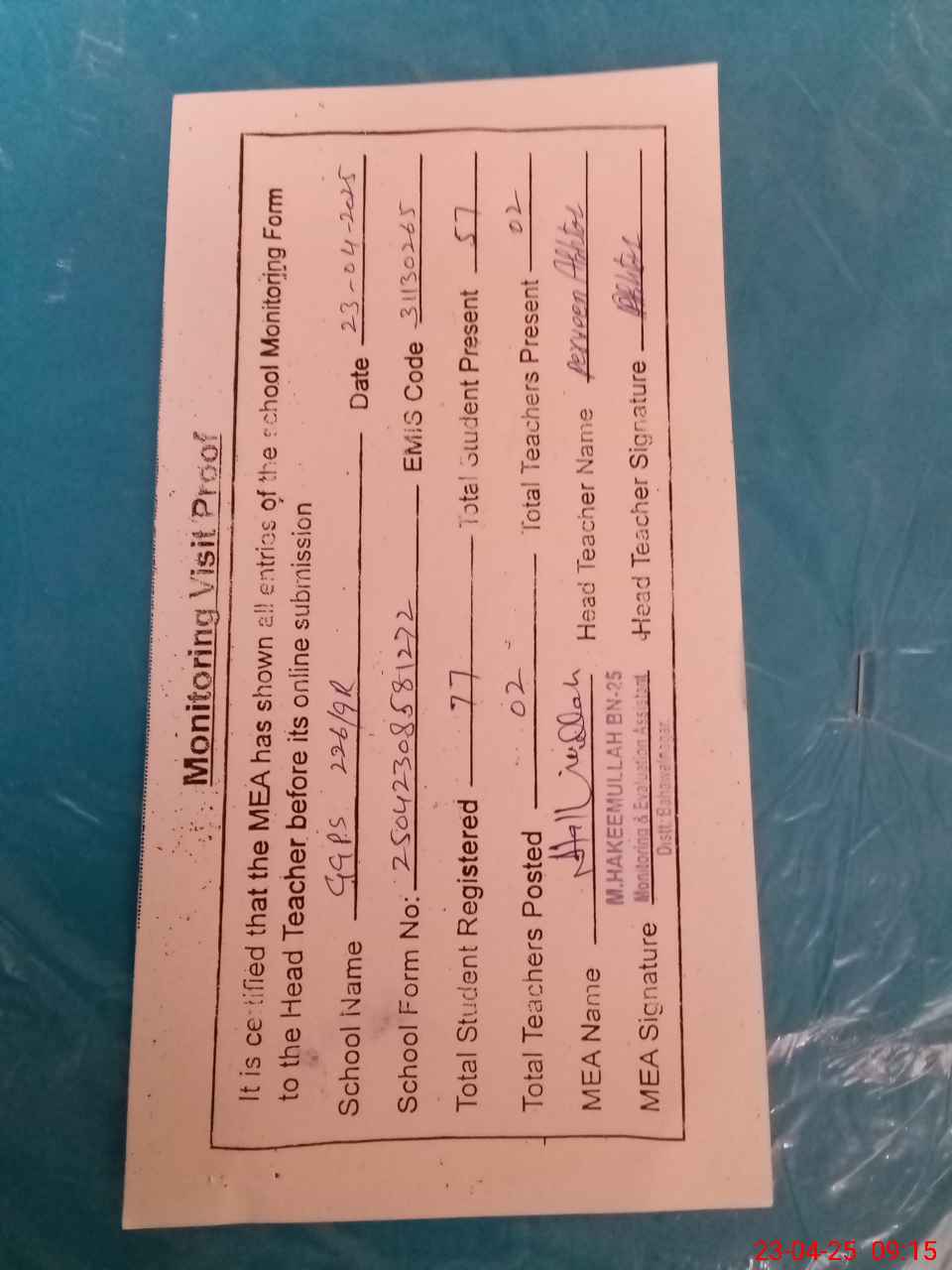 | EMIS Code: 31130265 | Name of School: GGPS CHAK NO 226/9-R | |||