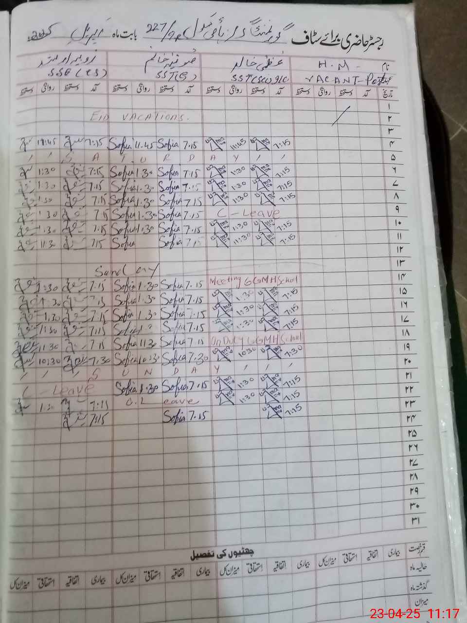| 31**** | Sh**** Na**** | CHOWKIDAR | Regular | 0 | 8 | 0 | 0 | 0 | 0 | 0 | 0 | 0 | Casual |