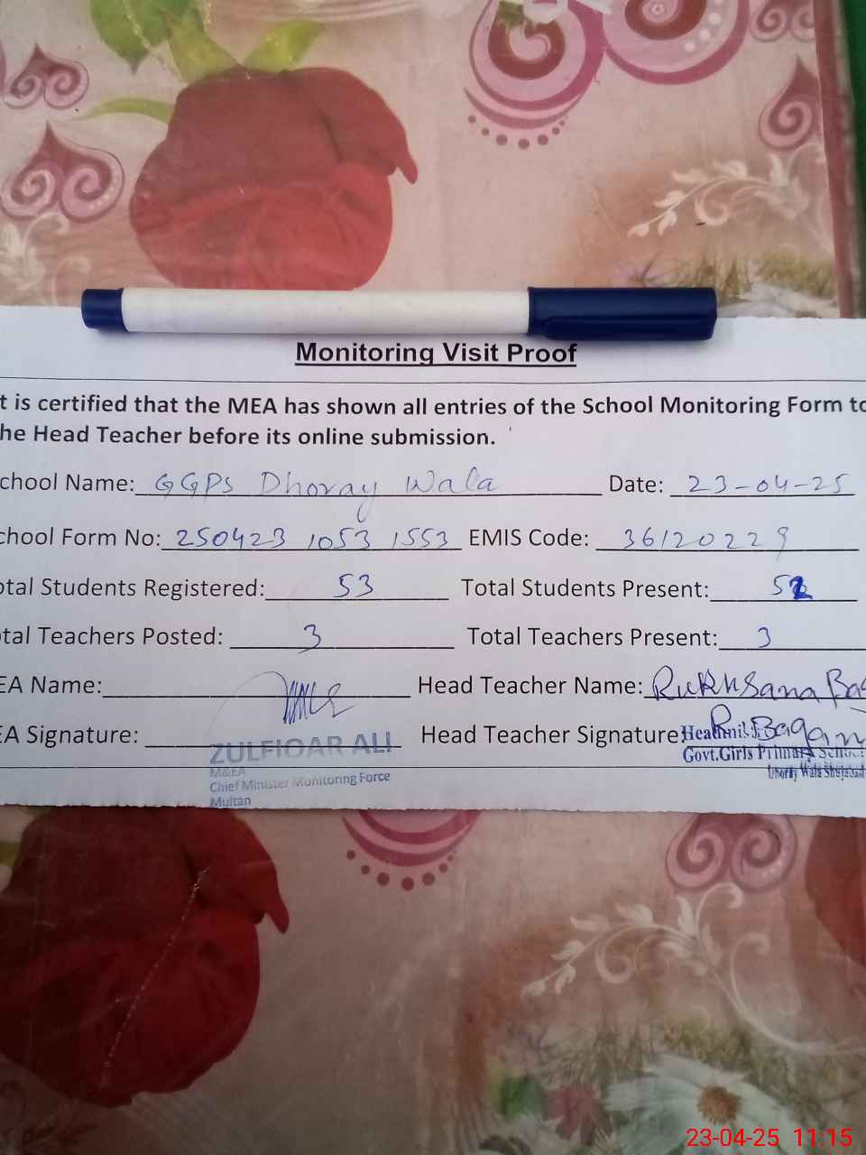 | EMIS Code: 36120229 | Name of School: GGPS DHORAY WALA NO. 2 SHUJABAD | |||