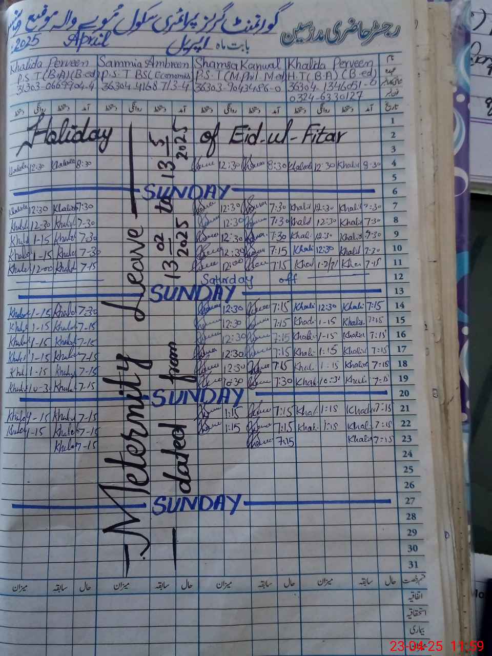 | 36**** | Sa**** Am**** | PST | Regular | 0 | 0 | 0 | 0 | 0 | 0 | 0 | 0 | 0 | Maternity |