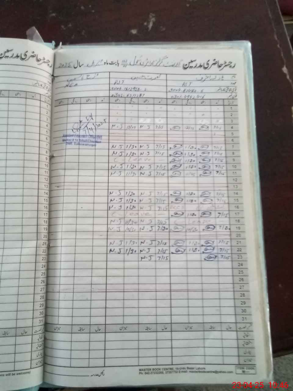 | CNIC | Full Name | Designation | R/C | Absence During Last Calender Month |