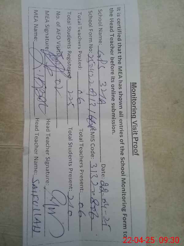 | Name: SA**** UL**** Designation: (School Headmaster's/Headmistress's) PST Phone/Cell Number: 03**** |