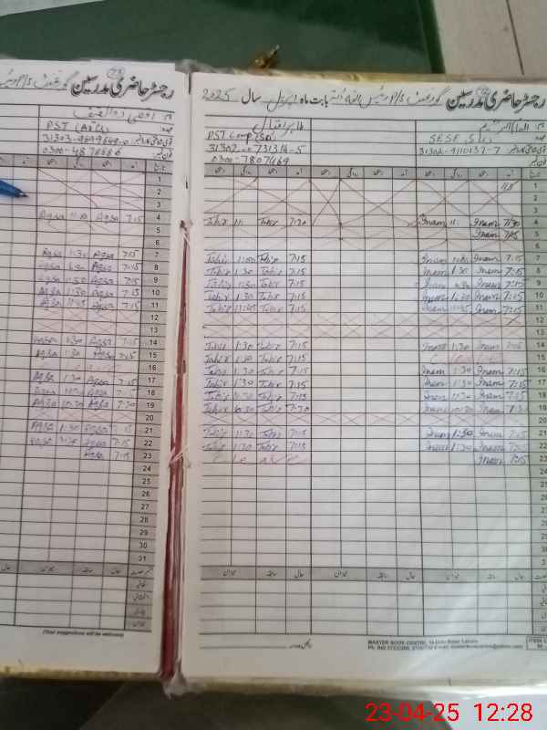 | CNIC | Full Name | Designation | R/C | Absence During Last Calender Month |