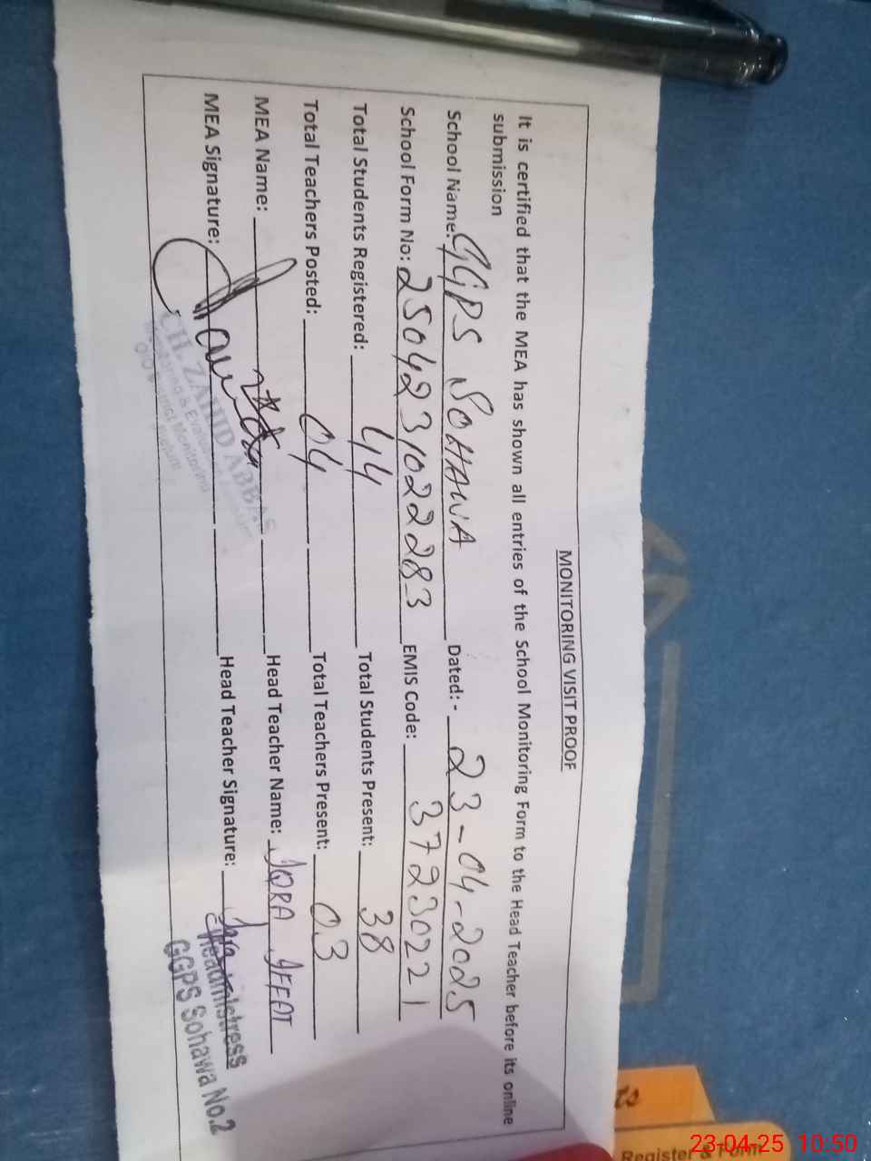 | EMIS Code: 37230221 | Name of School: GGPS SOHAWA NO.2 | |||