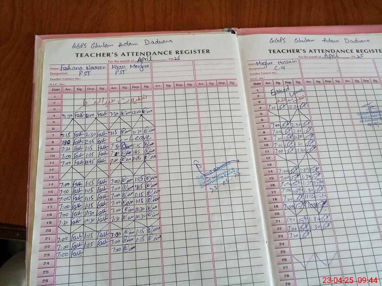 | Name: FA**** NO**** Designation: (School Headmaster's/Headmistress's) PST Phone/Cell Number: 03**** |