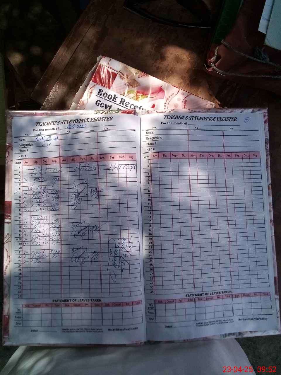 | CNIC | Full Name | Designation | R/C | Absence During Last Calender Month |