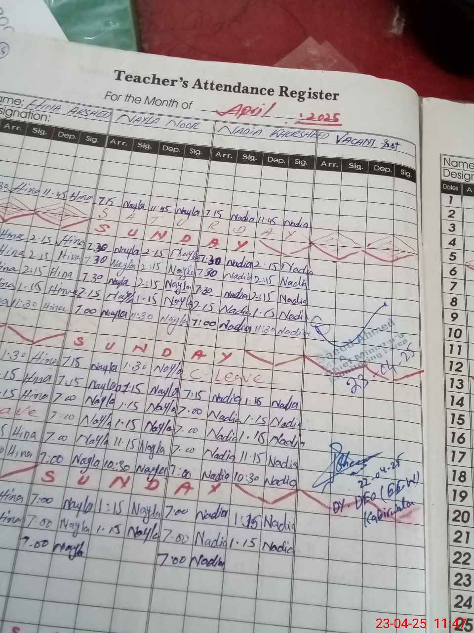 | CNIC | Full Name | Designation | R/C | Absence During Last Calender Month |