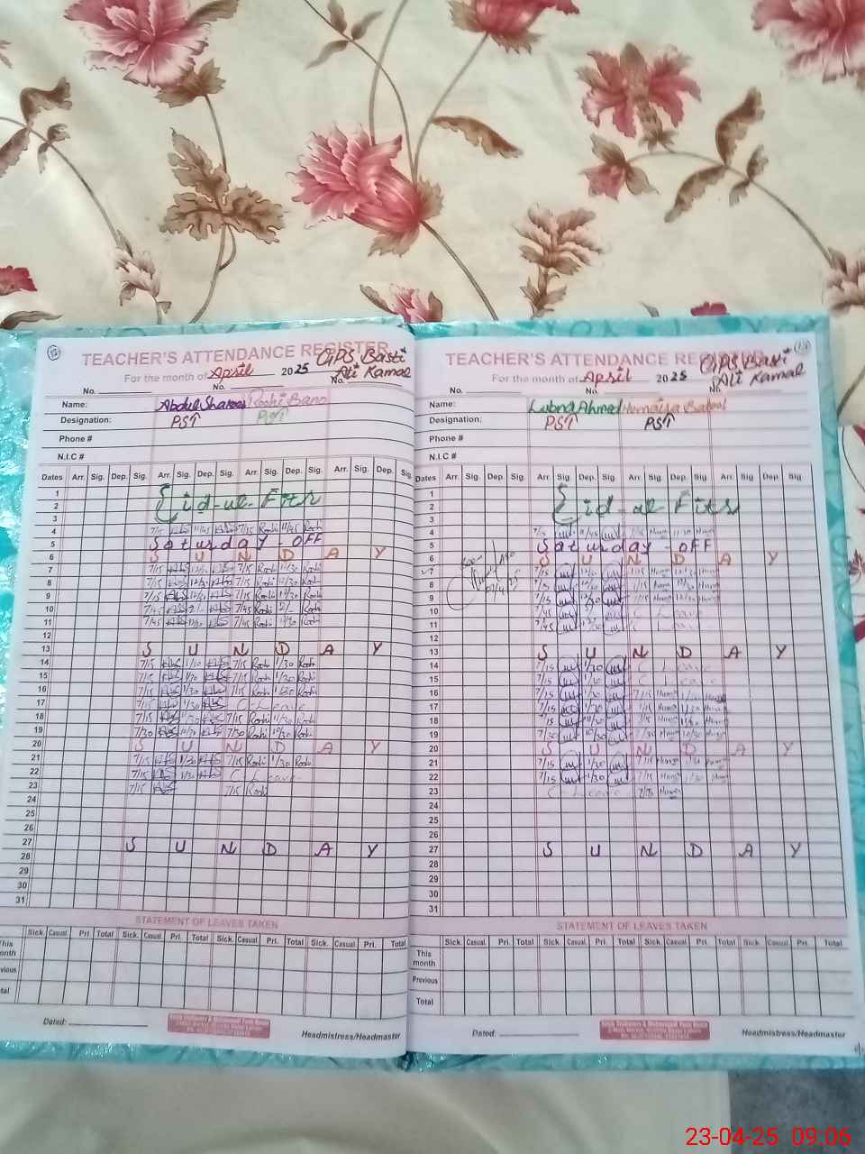 | Name: AB**** SH**** Designation: (School Headmaster's/Headmistress's) PST Phone/Cell Number: 03**** |