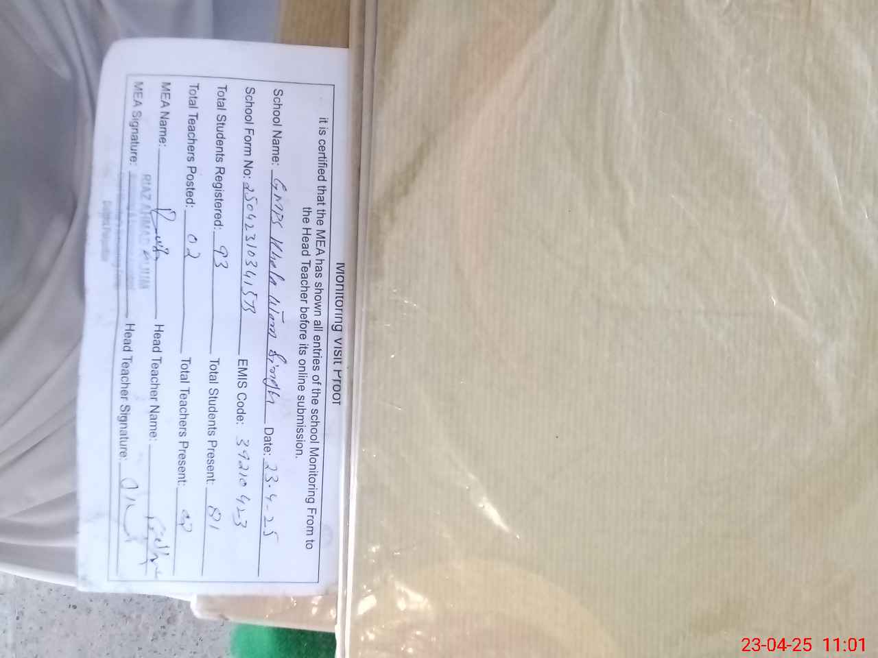 | Attendance Register | Head Teacher | MEA with School | Visit Proof |