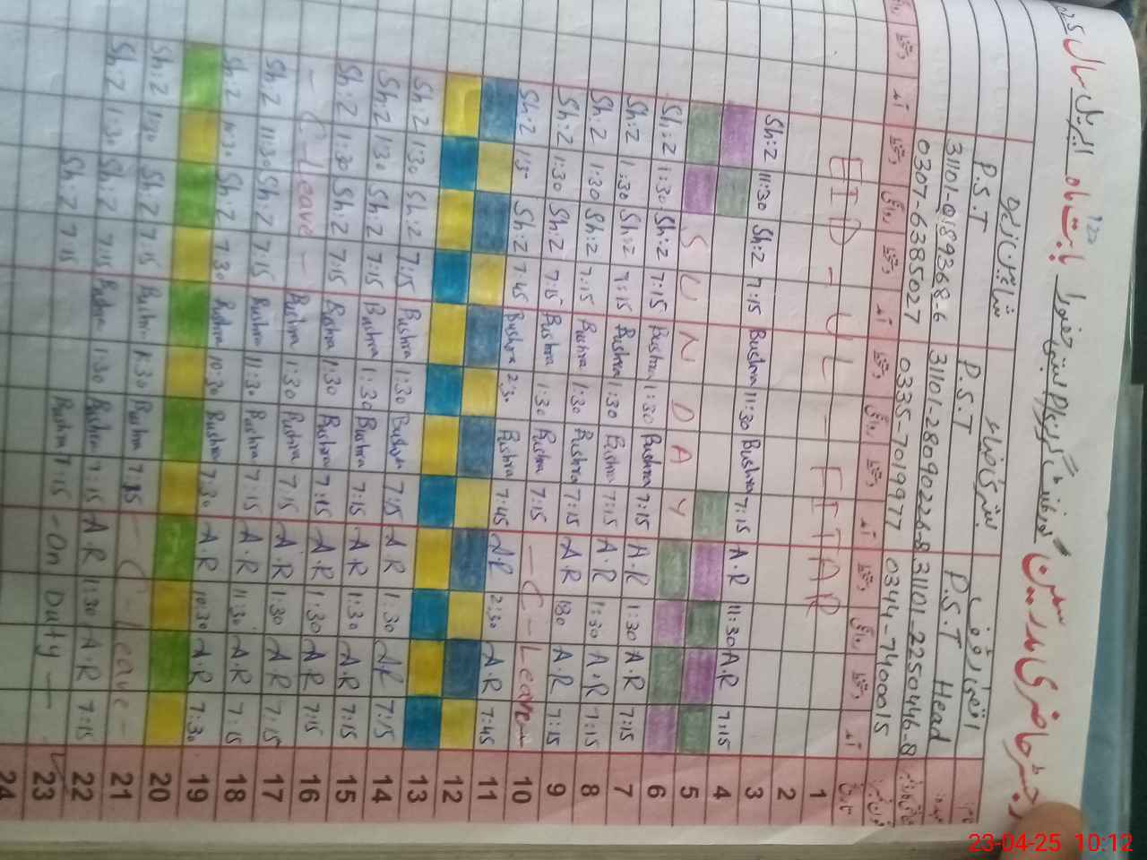 | CNIC | Full Name | Designation | R/C | Absence During Last Calender Month |