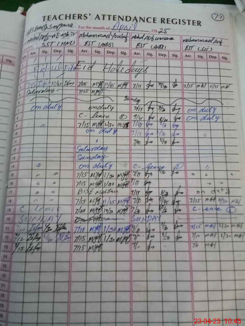 | CNIC | Full Name | Designation | R/C | Absence During Last Calender Month |